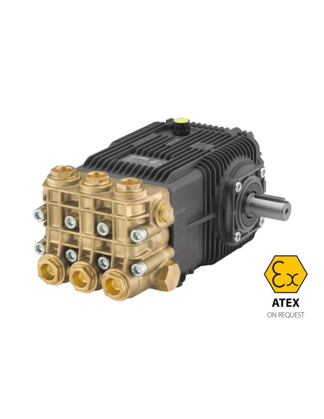 Bombas volumétricas alternas de 3 pistones para uso en unidades de limpieza y sistemas industriales. Se pueden acoplar a diversos tipos de motores, directamente o mediante junta flexible. Cuerpo y tapa de la bomba en aleación de aluminio fundido a presión. Tapa lateral ciega o con visor de aceite. Tapa trasera con salida de drenaje de aceite y visor. Pistones accionados por biela-manivela. Eje de la bomba en acero estampado de alta resistencia. Cojinetes de fricción sobredimensionados. Bielas en aleación especial de zinc-aluminio de baja fricción, fundida a presión. Pistones cerámicos de una pieza. Cabezal de la bomba en latón estampado. Cabezal de la bomba en latón niquelado, bajo pedido. Sistema de sellado con doble junta. Las válvulas de admisión y descarga cuentan con tapones para facilitar el mantenimiento.