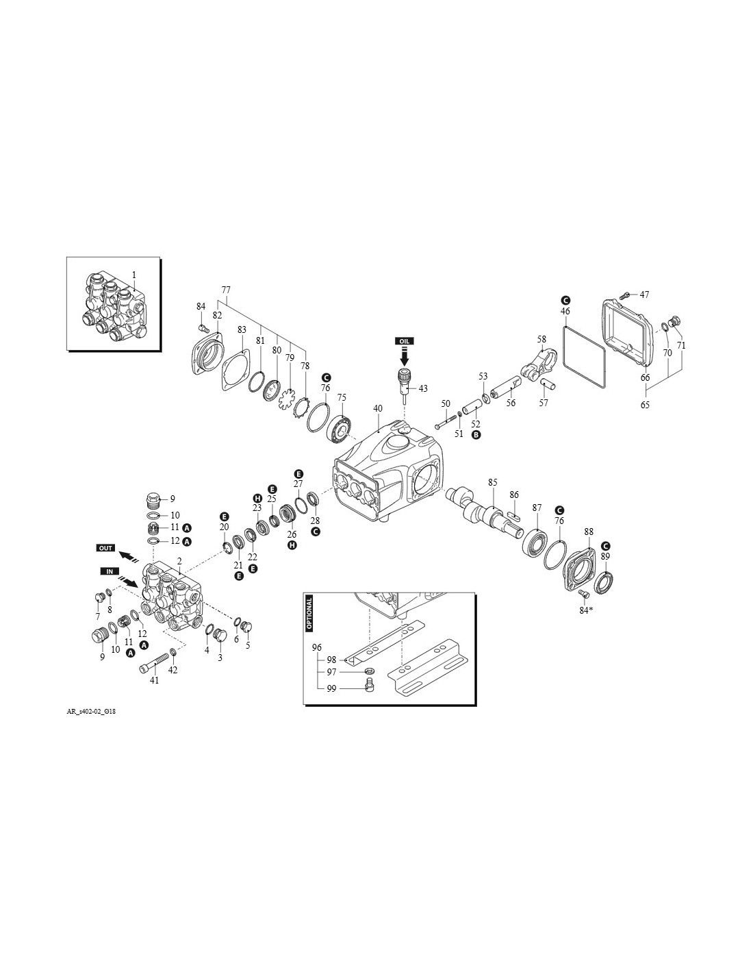 Bombas volumétricas alternas de 3 pistones para uso en unidades de limpieza y sistemas industriales. Se pueden acoplar a diversos tipos de motores, directamente o mediante junta flexible. Cuerpo y tapa de la bomba en aleación de aluminio fundido a presión. Tapa lateral con visor de aceite incorporado. Tapa trasera con salida de drenaje de aceite. Pistones accionados por un mecanismo de biela-manivela. Eje de la bomba en acero estampado de alta resistencia. Cojinetes de fricción sobredimensionados. Bielas en aleación especial de zin-aluminio de baja fricción, fundida a presión. Pistones cerámicos de una pieza. Cabezal de la bomba en latón estampado. Sistema de sellado con doble junta. Diversos tipo de juntas disponibles según la aplicación. Las válvulas de admisión y de impulsión cuentan con tapones para facilitar el mantenimiento. Se pueden conectar diversas válvulas reguladoras y accesorios al cabezal de la bomba.
