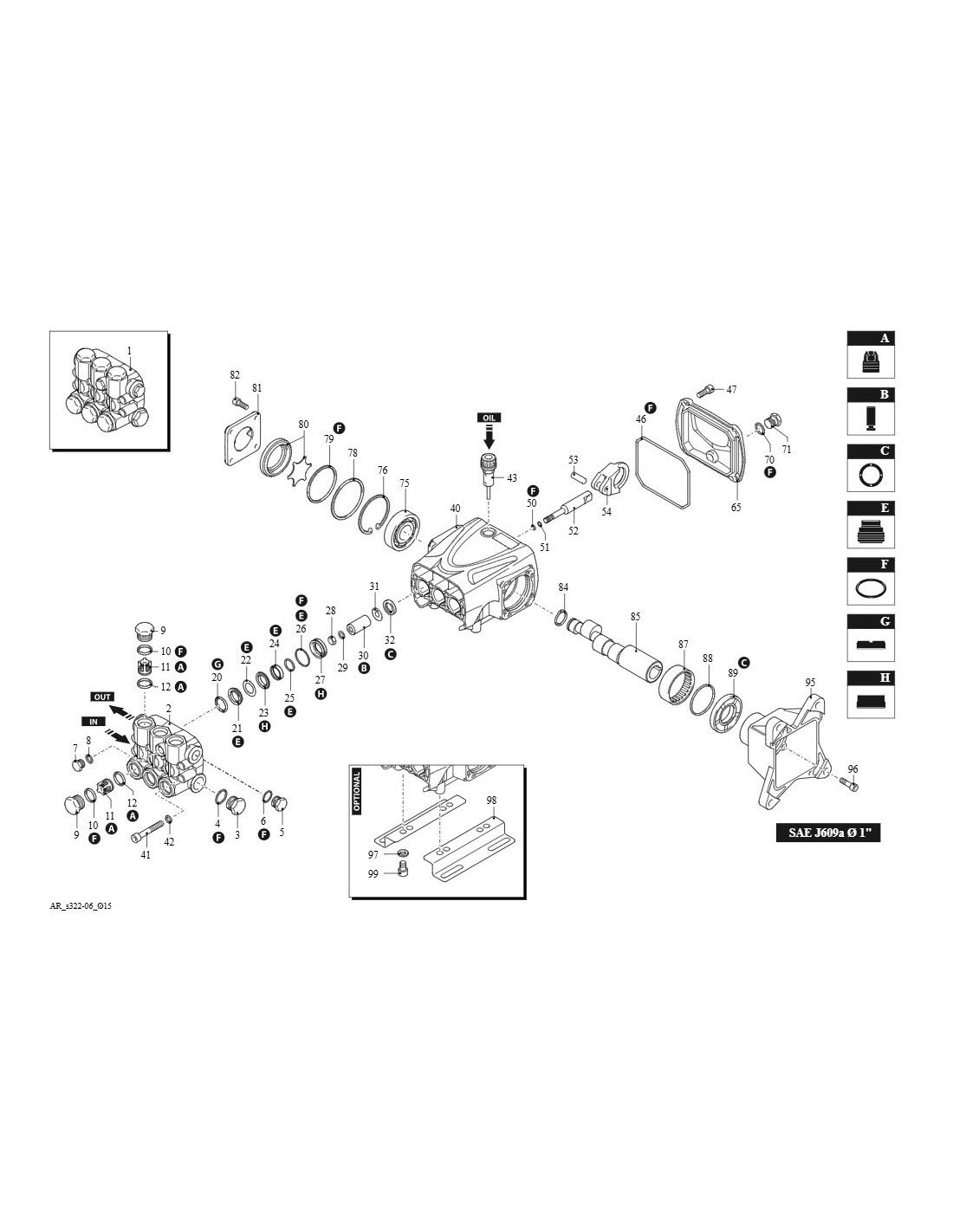 Bombas volumétricas alternas de 3 pistones para uso en unidades de limpieza y sistemas industriales. Bomba de eje hueco con brida incluida para motor de gasolina de 1" diámetro SAE J609a. Cuerpo y tapa de la bomba con aleación de aluminio fundido a presión. Tapa lateral con visor de aceite. Nivel de aceite en el cuerpo de la bomba. Tapa trasera con salida de drenaje de aceite. Pistones accionados por un mecanismo de biela-manivela. Eje de la bomba en acero estampado de alta resistencia. Cojinetes de fricción sobredimensionados. Bielas en aleación especial de zinc-aluminio de baja fricción, fundida a presión. Pistones cerámicos de una pieza. Cabezal de la bomba en latón estampado. Sistemas de sellado con doble junta. Válvulas de admisión y de impulsión con tapones para facilitar el mantenimiento.
