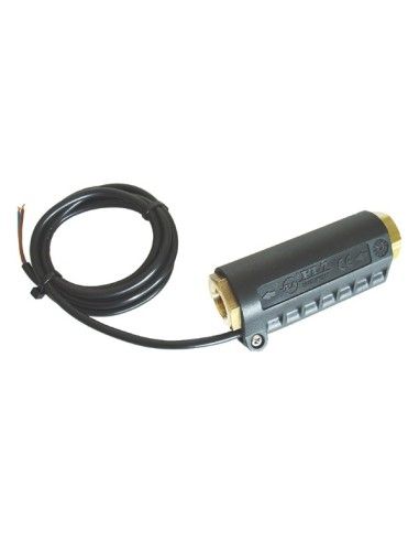 Controla el flujo de agua con fiabilidad gracias al flusostato FL7, un dispositivo electro‑mecánico que activa un conmutador magnético cuando detecta un caudal mínimo de 4 l/min. Está diseñado para altas presiones (hasta 350 bar), con una temperatura máxima de trabajo de 75 °C. Dispone de una salida eléctrica (reed) para hasta 3 A, y un aislamiento de clase IP55, lo que garantiza un funcionamiento seguro incluso en entornos exigentes. Su conexión hidráulica es de 3/8″ BSP F tanto en entrada como en salida, y cuenta con un cable de 1.250 mm para facilitar el montaje.