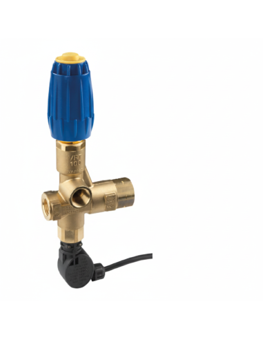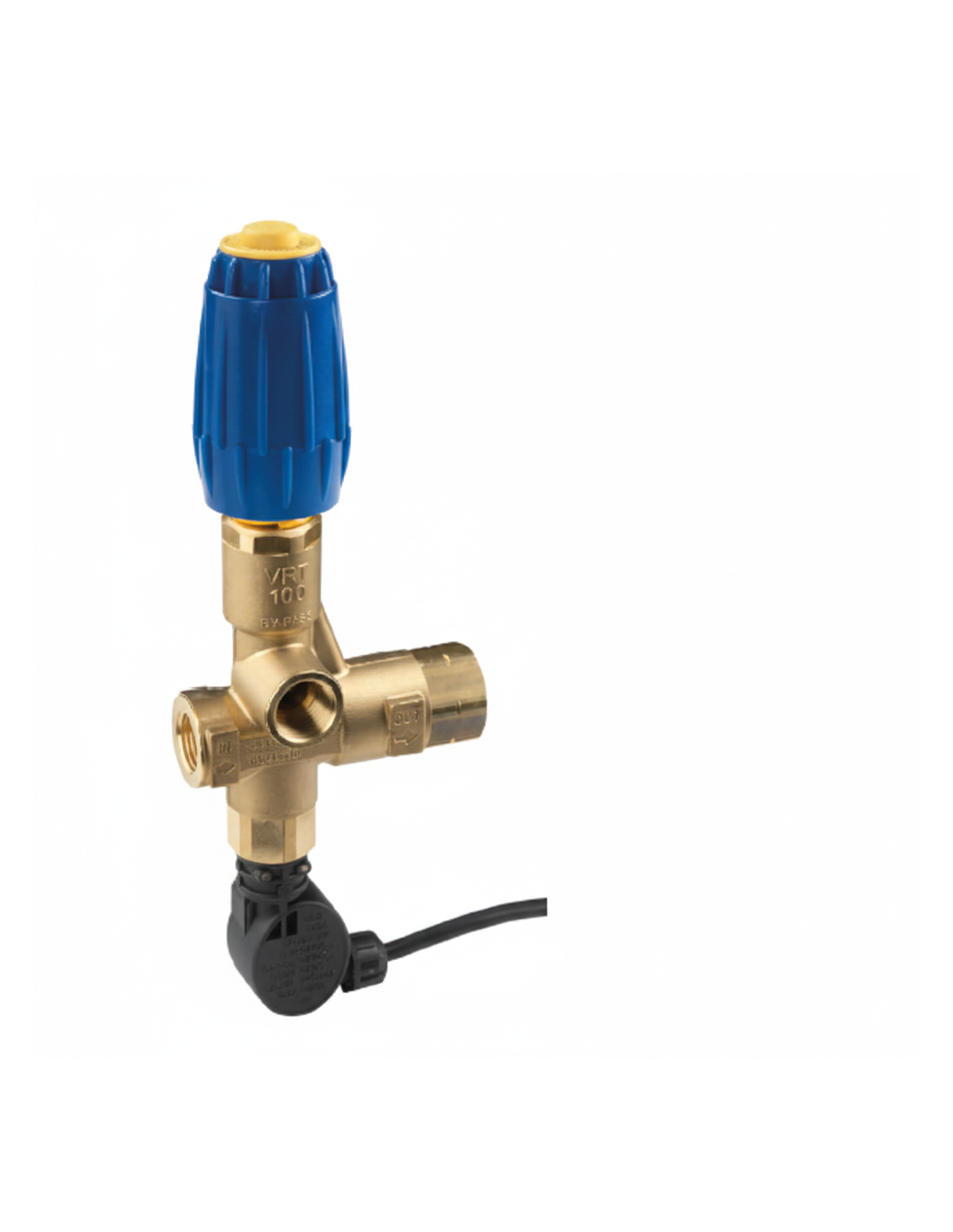 Valvula bypass VRT100 pomo azul + presostato pomo negro permite desviar parte del flujo de un sistema para mantener la presión dentro de límites seguros y eficientes.